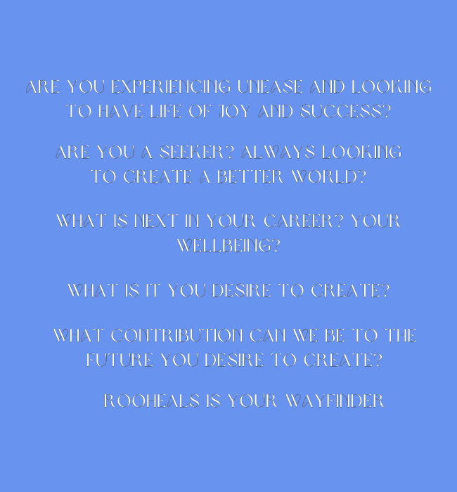 Rooheals focus extends beyond just physical health functionality and survival to incorporate honoring of the body, nurturing the spirit, mental wellbeing. We believe in transforming people’s lives by empowering them to choose and create their lives as they desire and thrive.